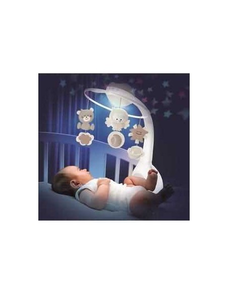 Evolutivo, 3-en-1: móvil musical (de 0 a 5 meses), lámpara de noche (de 6 a 18 meses) y lámpara de sobremesa (a partir de 18 meses); con espejo y ajuste del volumen del sonido