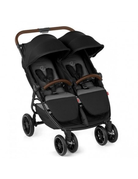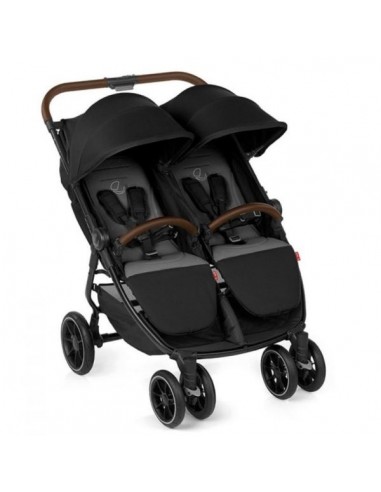 Silla gemelar compacta y ligera gracias a su chasis de aluminio. Con capota extensible y respaldo multiposiciones que funcionan de manera independiente para adaptarse a cada peque.