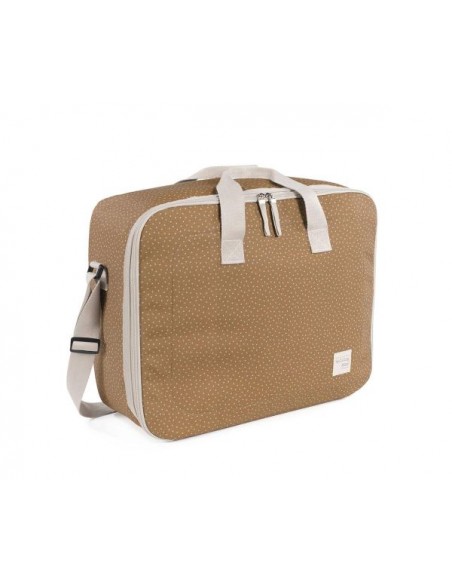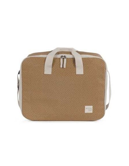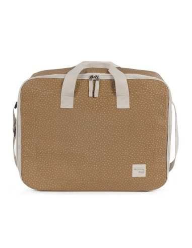 La maleta de bebé Poppy Canela de topitos es un bolso especialmente diseñado para el momento más importante del embarazo, que es la llegada de tu bebé, momento en el que hay un montón de cosas que preparar. Por esto necesitas un espacio cómodo para transportar todo lo necesario para ti, el padre y el niño. Esta maleta de bebé es el modelo perfecto para cubrir todo lo que no puede faltar en este día tan especial. Es cómoda, ligera y manejable con dimensiones rectangulares y apertura práctica para tener todas tus necesidades cubiertas. Cuenta con cierre seguro de cremallera en ambas direcciones que facilitan su apertura, incluye una correa larga para llevar colgada en el hombro y asas cortas de mano. Además en el compartimiento interior tiene un forro a juego con gomas para contener la ropa y mantener todo en su lugar. Gran calidad y mucho estilo. Fabricado en un material resistente y de fácil limpieza a mano o a máquina a 30 °C. Walking Mum protege a tu bebé utilizando los mejores tejidos, libres de colorantes azoicos y sustancias nocivas para la salud. Nuestra colección Walking Mum guarda toda la calidad de la marca Pasito a Pasito pero con un particular sello de estilo urbano y moderno que no pasa desapercibido, para vestir diferente los paseos con tu bebé. Las bolsas de maternidad de esta línea son más sport y prácticas, especialmente pensadas en mamás y papás modernos que aprecian los diseños más actuales y en tendencia sin dejar de lado la calidad y la funcionalidad de los accesorios que complementan y hacen más cómodos todos los paseos con sus bebés. Especificaciones: Materiales: 100 % algodón plastificado. Medidas: 49X37X17 cm.