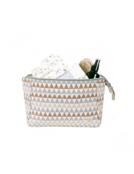Es un modelo diferente y moderno con mucho estilo para adecuarse a lo que necesitas. Su diseño simple y cómodo de forma rectangular ofrece comodidad gracias a su distribución con varios compartimentos para transportar todos los artículos de aseo de tu bebé que por ser tan pequeños a veces se pierden dentro del bolso canastilla y aquí puedes tenerlos todos ordenados y siempre a mano. Cuenta con asas ubicadas en la parte superior para cargar el bolso y tiene un cierre seguro de cremallera para evitar que algo pueda salirse. Gran calidad y mucho estilo. Fabricado en un material resistente y de fácil limpieza a mano o a máquina a 30 °C. Walking Mum protege a tu bebé utilizando los mejores tejidos, libres de colorantes azoicos y sustancias nocivas para la salud. Nuestra colección Walking Mum guarda toda la calidad de la marca Pasito a Pasito pero con un particular sello de estilo urbano y moderno que no pasa desapercibido, para vestir diferente los paseos con tu bebé. Los accesorios de esta línea son más sport y prácticos, especialmente pensadas en mamás modernas que aprecian los diseños más actuales y en tendencia sin dejar de lado la calidad y la funcionalidad de complementos que hacen más cómodos todos los paseos con sus bebés. Especificaciones: