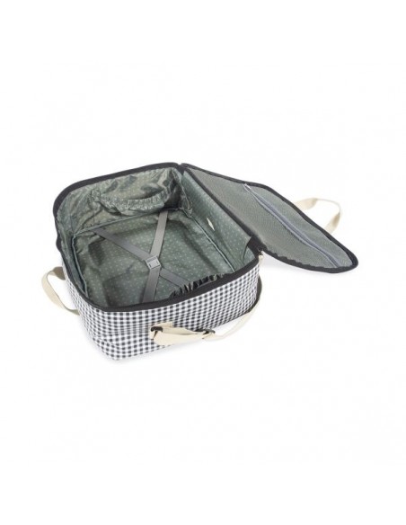 La maleta de bebé I love Vichy negro es un bolso especialmente diseñado para el momento más importante del embarazo, que es la llegada de tu bebé, momento en el que hay un montón de cosas que preparar. Por esto necesitas un espacio cómodo para transportar todo lo necesario para ti, el padre y el niño. Esta maleta de bebé es el modelo perfecto para cubrir todo lo que no puede faltar en este día tan especial. Es cómoda, ligera y manejable con dimensiones rectangulares y apertura práctica para tener todas tus necesidades cubiertas. Cuenta con cierre seguro de cremallera en ambas direcciones que facilitan su apertura, incluye una correa larga para llevar colgada en el hombro y asas cortas de mano. Además en el compartimiento interior tiene un forro a juego con gomas para contener la ropa y mantener todo en su lugar. Gran calidad y mucho estilo. Fabricado en un material resistente y de fácil limpieza a mano o a máquina a 30 °C. Walking Mum protege a tu bebé utilizando los mejores tejidos, libres de colorantes azoicos y sustancias nocivas para la salud. Nuestra colección Walking Mum guarda toda la calidad de la marca Pasito a Pasito pero con un particular sello de estilo urbano y moderno que no pasa desapercibido, para vestir diferente los paseos con tu bebé. Las bolsas de maternidad de esta línea son más sport y prácticas, especialmente pensadas en mamás y papás modernos que aprecian los diseños más actuales y en tendencia sin dejar de lado la calidad y la funcionalidad de los accesorios que complementan y hacen más cómodos todos los paseos con sus bebés. Especificaciones: Materiales: 100 % algodón plastificado. Color: negro. Medidas: 49X37X17 cm.