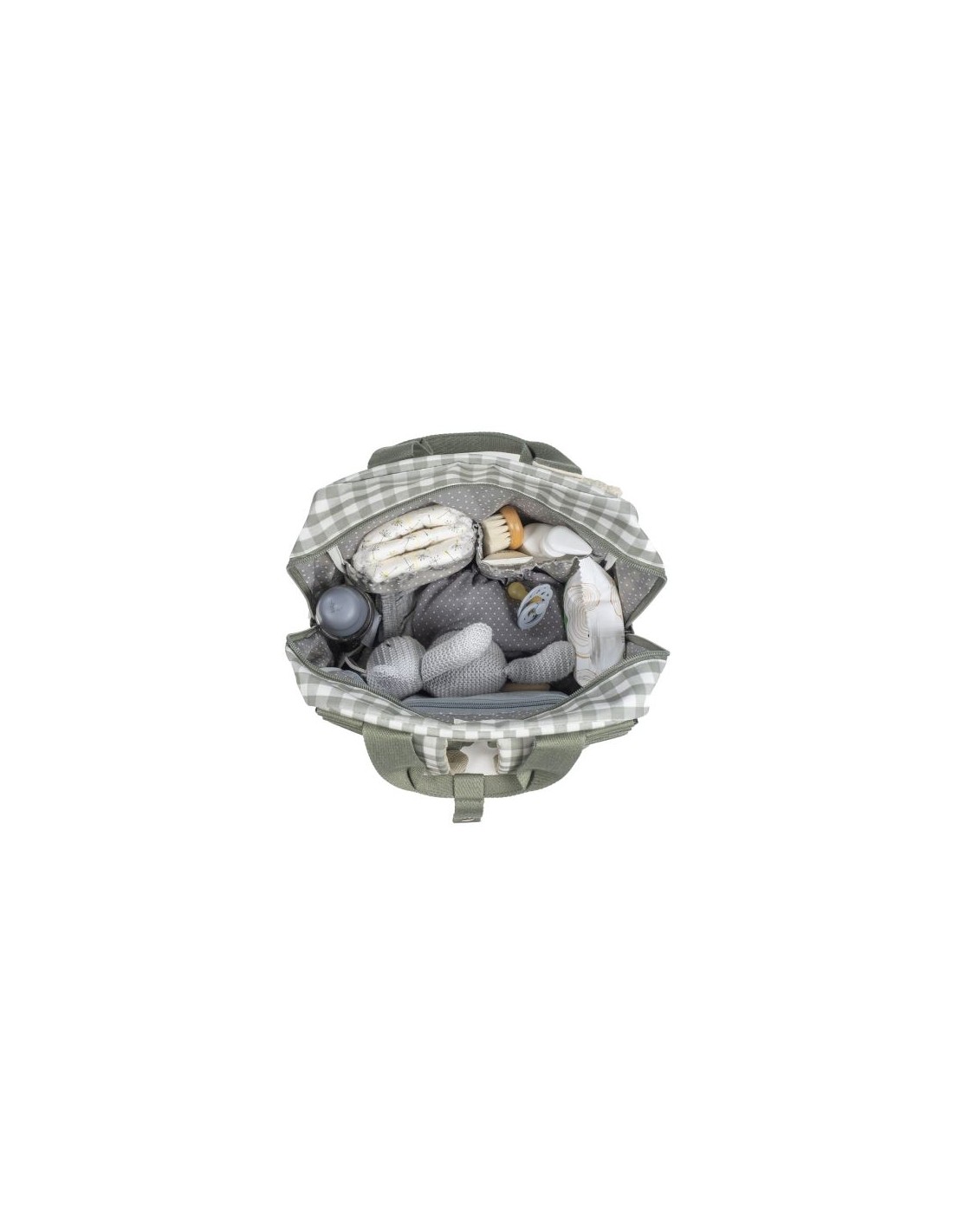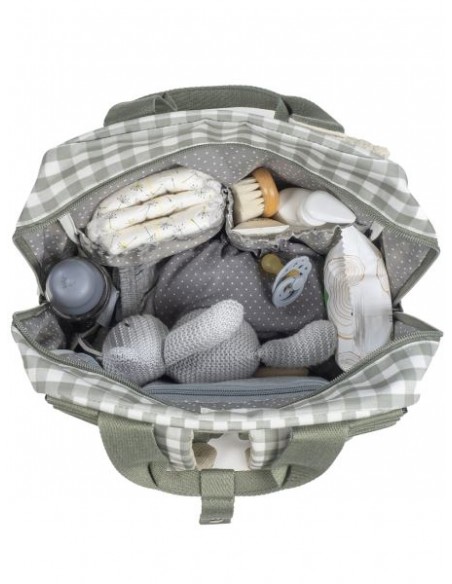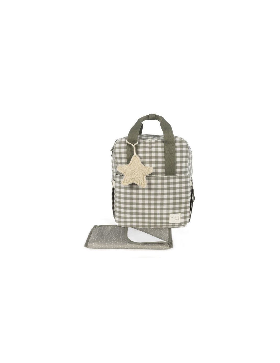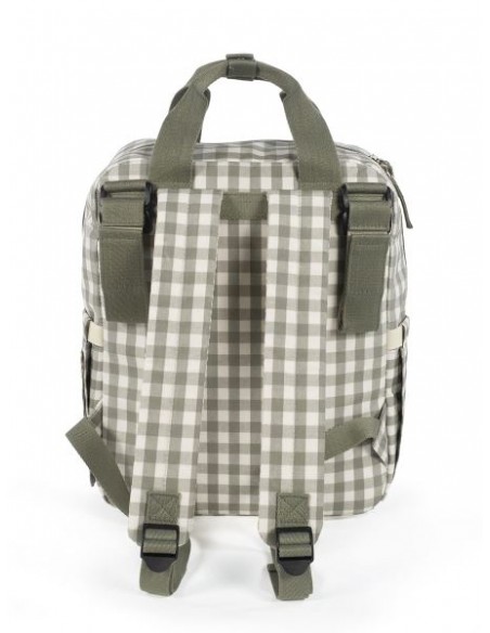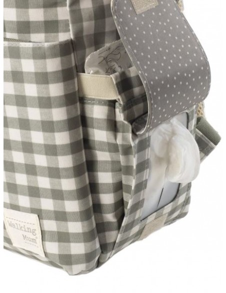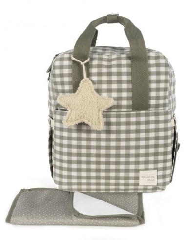 Una bolsa canastilla y mochila al mismo tiempo, muy moderna y urbana, ideal para llevar tus cosas y las de tu bebé, con mucho estilo, a todos sus paseos. La bolsa Caetana Stone de cuadros verdes para silla de paseo es un modelo multifunción muy ligero, resistente y de gran capacidad para llevar todo lo necesario en el paseo del bebe. Incluye un charm en forma de estrella donde puedes bordar el nombre de tu bebé para personalizar el bolso. Su esquema ofrece múltiples bolsillos exteriores e interiores para poder tener todo ordenado y a mano. Tiene bolsillos para guardar los biberones y mantenerlos seguros, elásticos para colocar cubiertos, para las toallitas húmedas, también tiene un funda para la botella de agua y otros más. Incluye un cambiador a juego con el bolso de maternidad y un bolsillo plastificado para almacenar la ropa mojada y aislar la humedad del resto de la mochila. También tiene un bolsillo exterior para las toallitas húmedas. El bolso incluye 2 asas cortas ajustables que facilitan la colocación en cualquier modelo de silla de paseo, asas de mano y correas acolchadas para colgar en los hombros hacia la espalda, sin generar molestias por el peso. Gran calidad y mucho estilo. Fabricada en un material resistente y de fácil limpieza. Walking Mum protege a tu bebé utilizando los mejores tejidos, libres de colorantes azoicos y sustancias nocivas para la salud. Nuestra colección Walking Mum guarda toda la calidad de la marca Pasito a Pasito pero con un particular sello de estilo urbano y moderno que no pasa desapercibido, para vestir diferente los paseos con tu bebé. Las bolsas de maternidad de esta línea son más sport y prácticas, especialmente pensadas en mamás y papás modernos que aprecian los diseños más actuales y en tendencia sin dejar de lado la calidad y la funcionalidad de los accesorios que complementan y hacen más cómodos todos los paseos con sus bebés. Especificaciones: Materiales: 65% algodón / 35% poliéster plastificado. Medidas: 28X37X12 cm.
