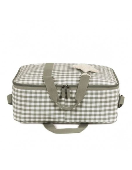 La maleta de bebé Caetana Stone de cuadros verdes es un bolso especialmente diseñado para el momento más importante del embarazo, que es la llegada de tu bebé, momento en el que hay un montón de cosas que preparar. Por esto necesitas un espacio cómodo para transportar todo lo necesario para ti, el padre y el niño. Esta maleta de bebé es el modelo perfecto para cubrir todo lo que no puede faltar en este día tan especial. Es cómoda, ligera y manejable con dimensiones rectangulares y apertura práctica para tener todas tus necesidades cubiertas. Cuenta con cierre seguro de cremallera en ambas direcciones que facilitan su apertura, incluye una correa larga para llevar colgada en el hombro y asas cortas de mano. Además en el compartimiento interior tiene un forro a juego con gomas para contener la ropa y mantener todo en su lugar. Incluye un charm en forma de estrella donde puedes bordar el nombre de tu bebé para personalizar el bolso. Gran calidad y mucho estilo. Fabricado en un material resistente y de fácil limpieza a mano o a máquina a 30 °C. Walking Mum protege a tu bebé utilizando los mejores tejidos, libres de colorantes azoicos y sustancias nocivas para la salud. Nuestra colección Walking Mum guarda toda la calidad de la marca Pasito a Pasito pero con un particular sello de estilo urbano y moderno que no pasa desapercibido, para vestir diferente los paseos con tu bebé. Las bolsas de maternidad de esta línea son más sport y prácticas, especialmente pensadas en mamás y papás modernos que aprecian los diseños más actuales y en tendencia sin dejar de lado la calidad y la funcionalidad de los accesorios que complementan y hacen más cómodos todos los paseos con sus bebés. Especificaciones: Materiales: 65% algodón /35% poliéster plastificado. Medidas: 49X37X17 cm.