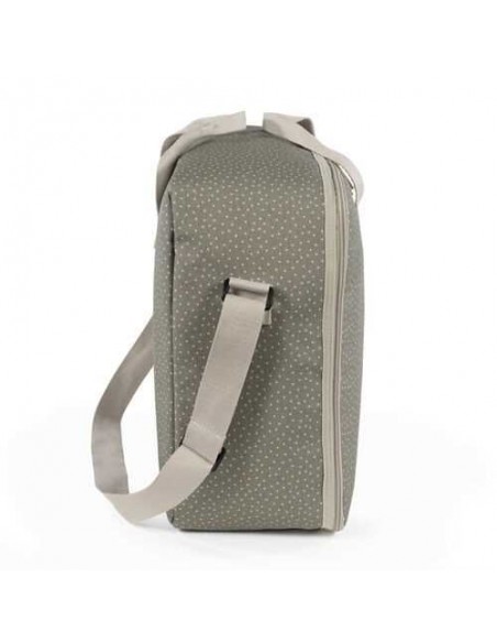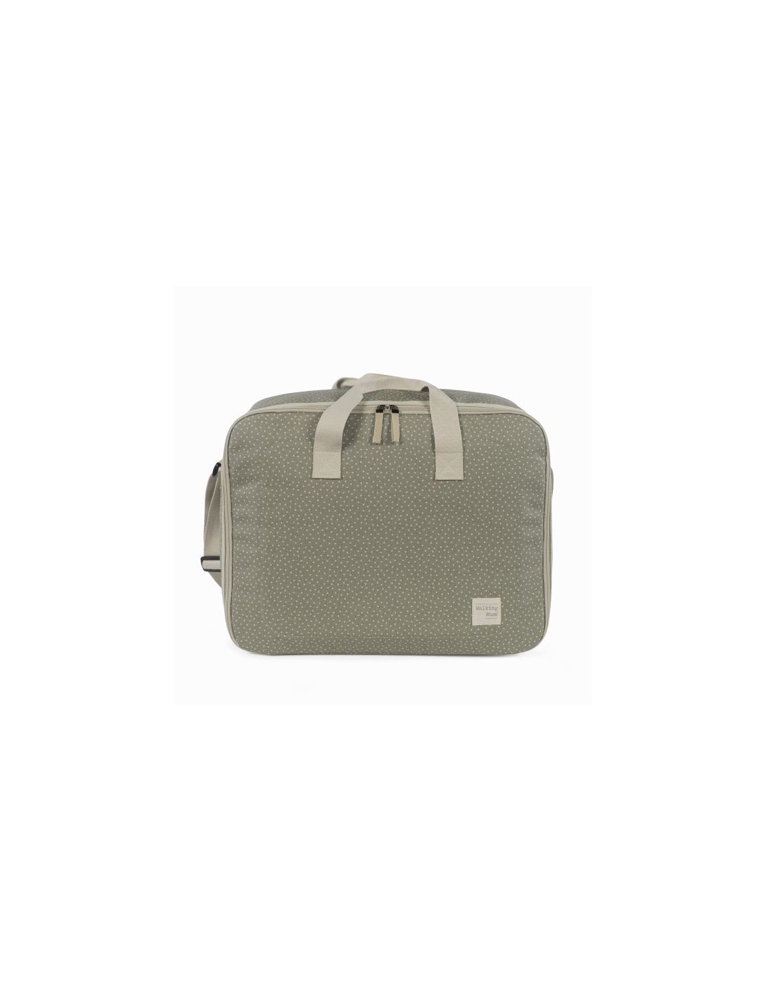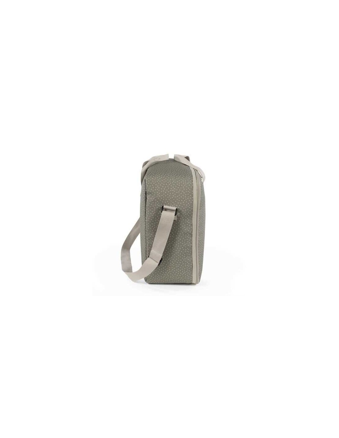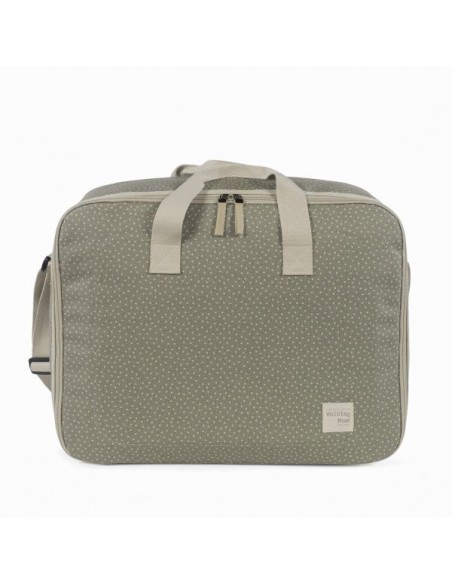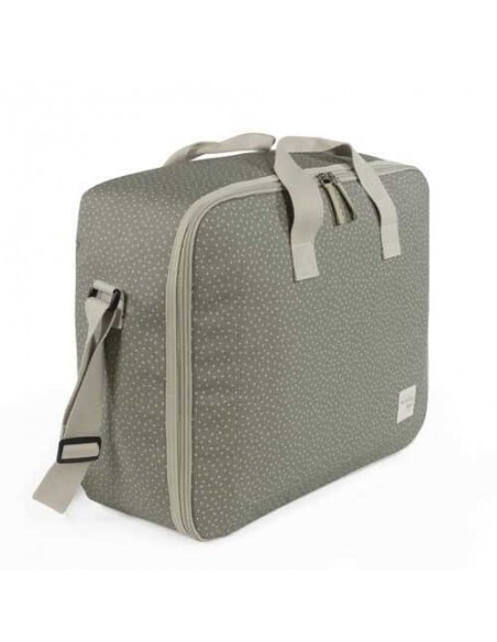 La maleta de bebé Poppy Musgo de topitos es un bolso especialmente diseñado para el momento más importante del embarazo, que es la llegada de tu bebé, momento en el que hay un montón de cosas que preparar. Por esto necesitas un espacio cómodo para transportar todo lo necesario para ti, el padre y el niño. Esta maleta de bebé es el modelo perfecto para cubrir todo lo que no puede faltar en este día tan especial. Es cómoda, ligera y manejable con dimensiones rectangulares y apertura práctica para tener todas tus necesidades cubiertas. Cuenta con cierre seguro de cremallera en ambas direcciones que facilitan su apertura, incluye una correa larga para llevar colgada en el hombro y asas cortas de mano. Además en el compartimiento interior tiene un forro a juego con gomas para contener la ropa y mantener todo en su lugar. Gran calidad y mucho estilo. Fabricado en un material resistente y de fácil limpieza a mano o a máquina a 30 °C. Walking Mum protege a tu bebé utilizando los mejores tejidos, libres de colorantes azoicos y sustancias nocivas para la salud. Nuestra colección Walking Mum guarda toda la calidad de la marca Pasito a Pasito pero con un particular sello de estilo urbano y moderno que no pasa desapercibido, para vestir diferente los paseos con tu bebé. Las bolsas de maternidad de esta línea son más sport y prácticas, especialmente pensadas en mamás y papás modernos que aprecian los diseños más actuales y en tendencia sin dejar de lado la calidad y la funcionalidad de los accesorios que complementan y hacen más cómodos todos los paseos con sus bebés. Especificaciones: Materiales: 100 % algodón plastificado. Medidas: 49X37X17 cm.