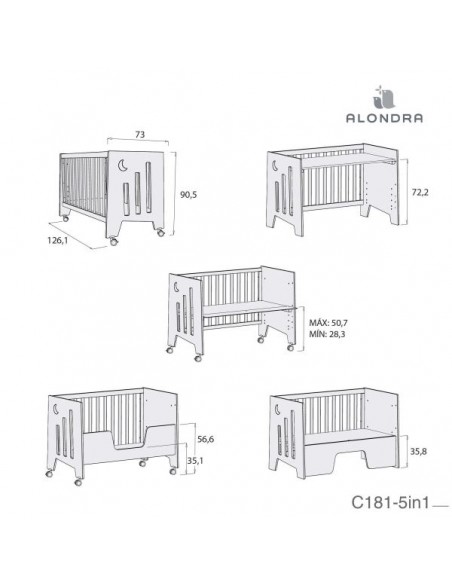 ALONDRA-CUNA BEBÉ Y ESCRITORIO 60X120 CM (2 EN 1)