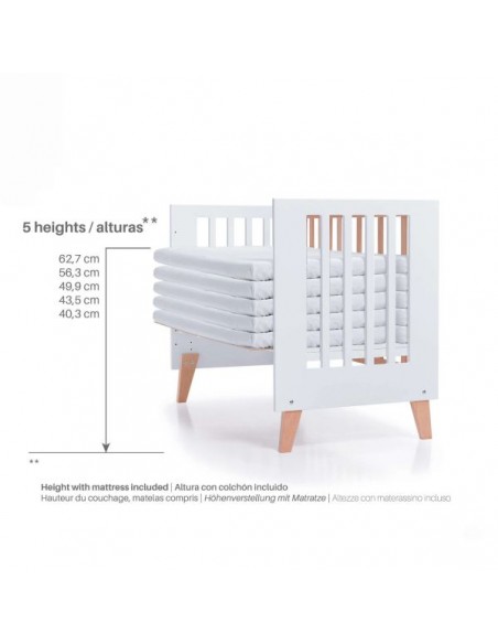 - Comprando el kit de colecho ref. WCO180-70 se puede utilizar como cuna de colecho. El somier se puede ajustar a 5 alturas para acoplar a la cama