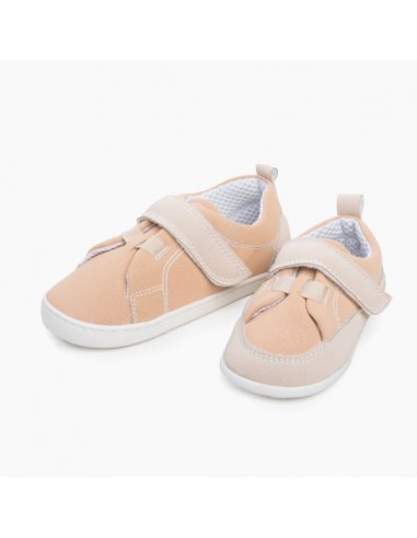 Calzado infantil respetuoso con el desarrollo del pie y con el medio ambiente. Calzado vegano: fabricamos con materiales sostenibles sin pieles de procedencia animal. Todo es tejido sintético y natural. Calzado fácil de poner para mejorar la autonomía del niño/a. 100% flexible para no interferir en su forma natural de pisar. Horma ancha no aducida para mayor confort y para que los dedos se muevan con libertad. Muy resistente a las abrasiones gracias a la tela técnica. Suela de 3mm, plana y flexible, plantilla extraíble y diseños rompedores. Sin topes ni contrafuertes.