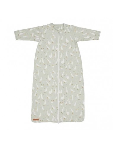 Saco de dormir verde menta con estampado de ocas. El saco con mangas desmontables es perfecto para los fríos días de invierno, permitirá a tu bebé dormir cómodo y calentito sin destaparse.